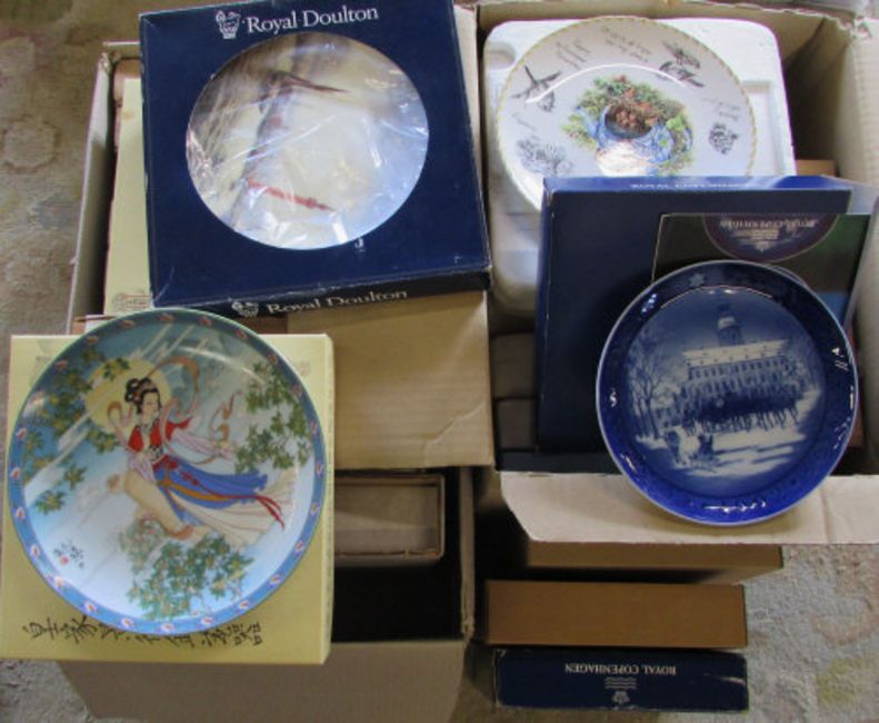 2 boxes of boxed collectors plates inc Royal Doulton, Danbury Mint and Royal Copenhagen
