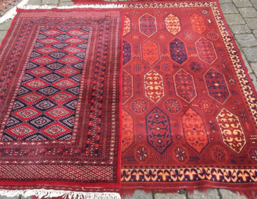 2 red ground Persian style rugs. Largest 170cm by 133cm