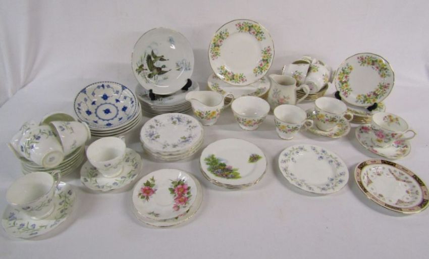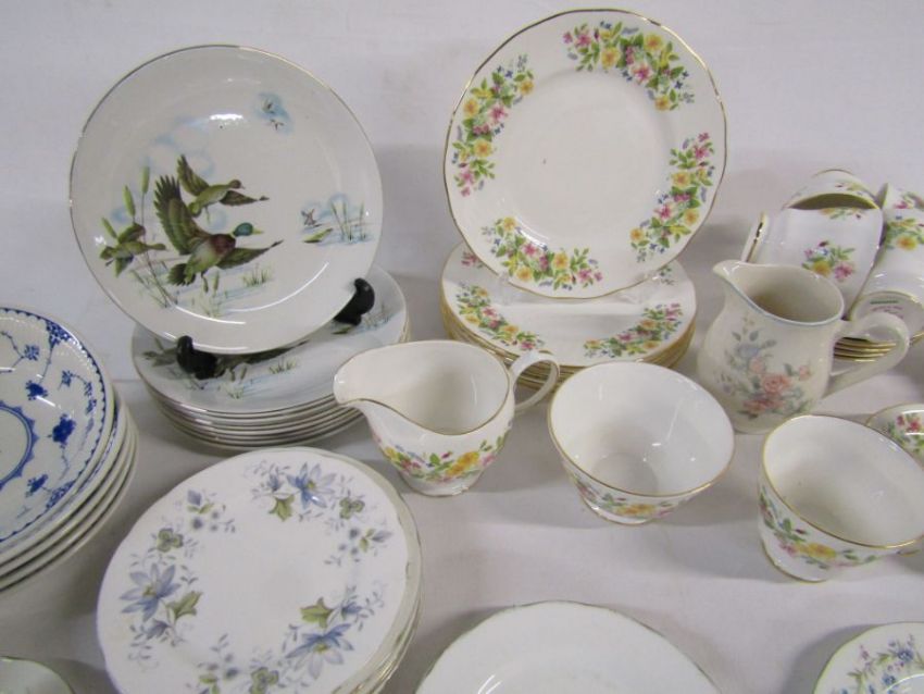 Mixed collection of tableware to include Alfred Meakin duck plates, Duchess, Mason's etc (plate stands for display only)