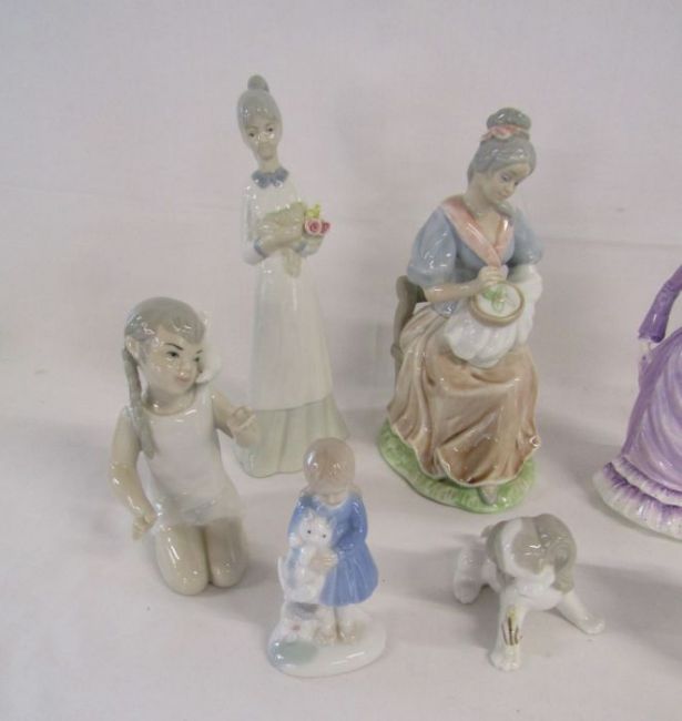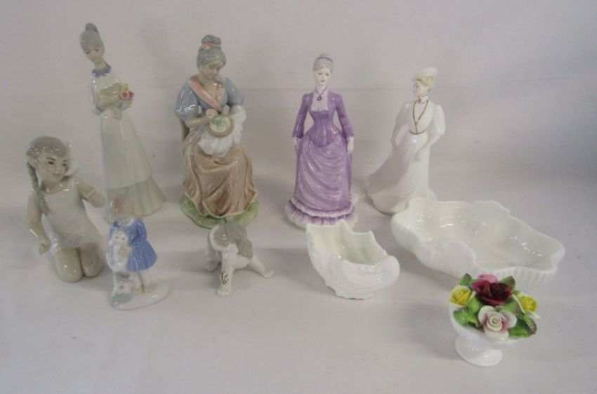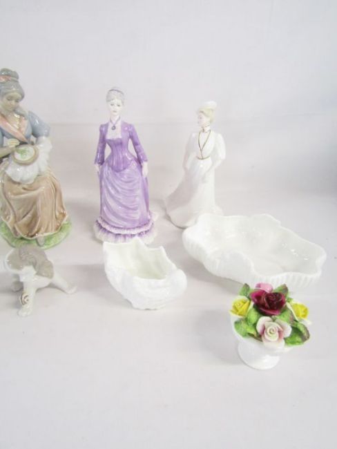 Coalport 'Lorraine' and 'Sarah' Ladies of fashion, other items of Coalport and unmarked figurines