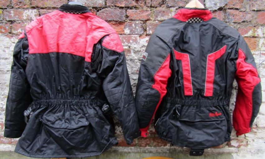 Collection of motorbike clothing to include Frank Thomas Aqua suit XXL, Motoline textile jacket with body armour M, Motoline textile jacket with armour XXL, motorbike Trousers XXL & XL and a pair of gloves
