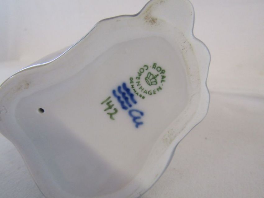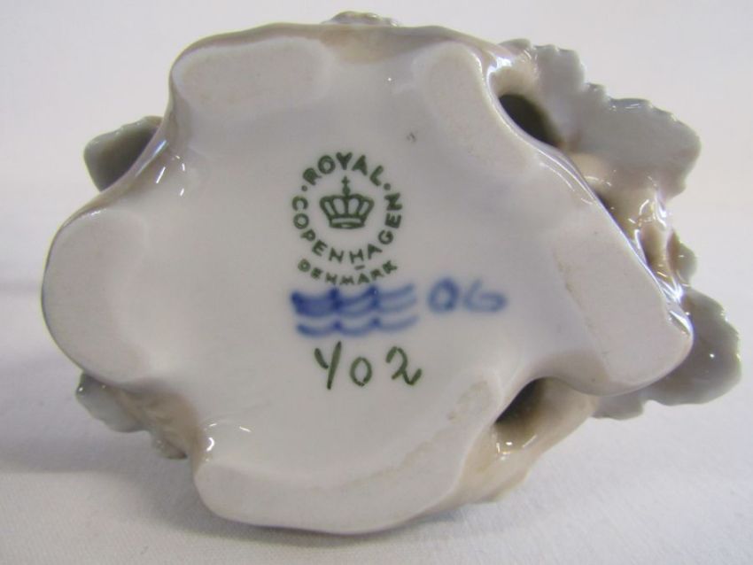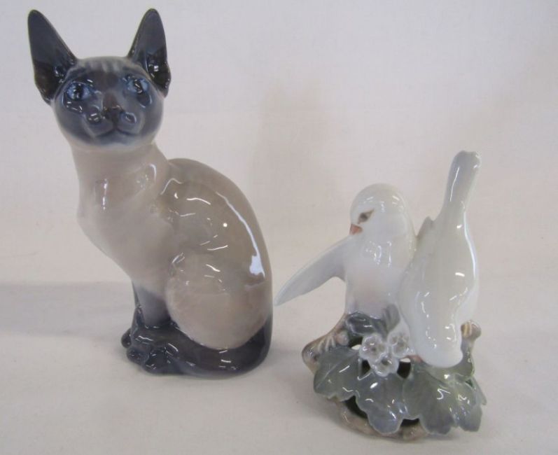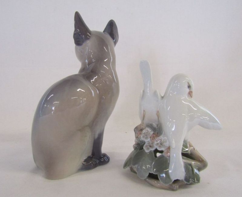 Royal Copenhagen Siamese cat 142 approx. 19cm and Royal Copenhagen Lovebirds 402 approx. 14cm