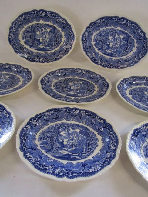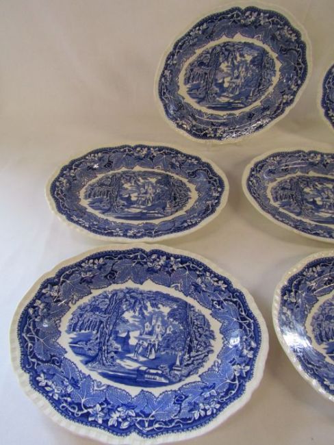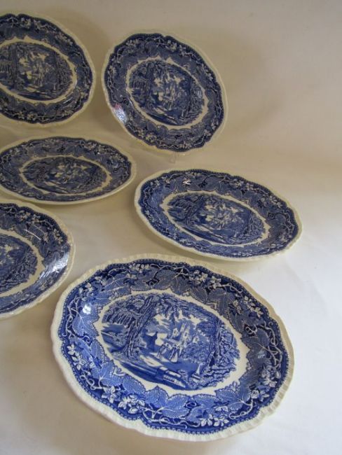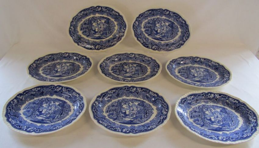 Collection of 7 Mason's Vista oval dinner plates