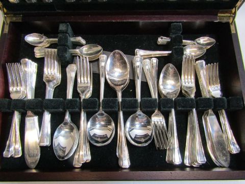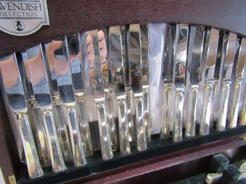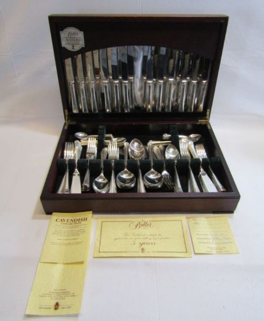 Cased George Butler of Sheffield Cavendish Collection 124 piece cutlery set (appears complete) in the Harley pattern