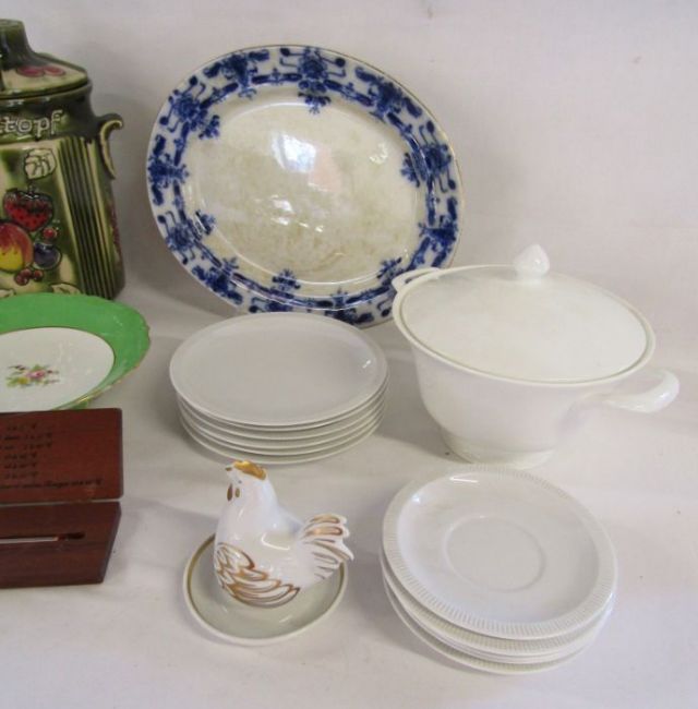 Collection of items to include W.German Rumtopf, Dudley blue and white plate, Royal Worcester egg cup etc
