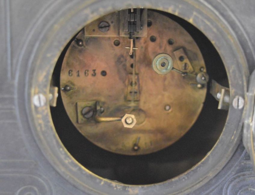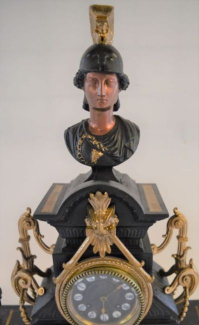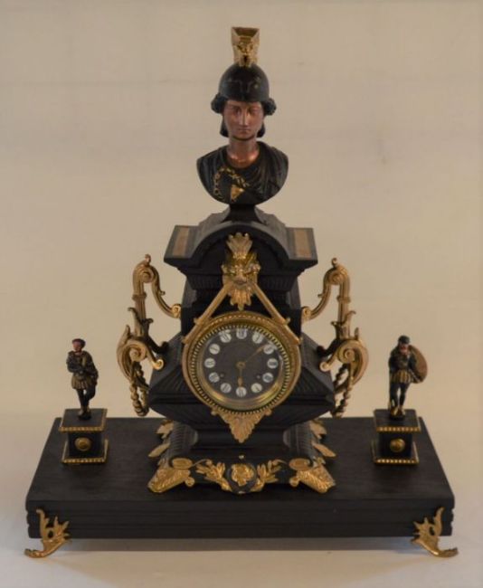 Japy Freres goddess figural clock on later stand. Total height 55cm