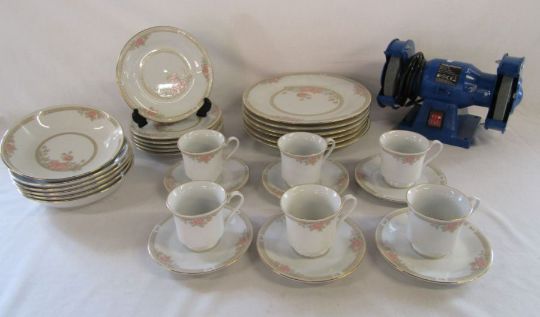 Chinese Ming part dinner service and a Tooltronix bench grinder PTL-70