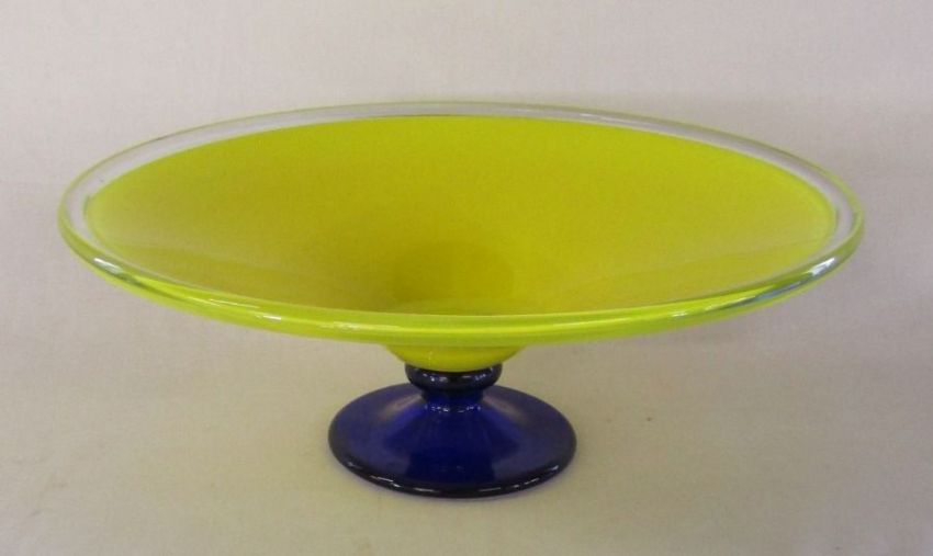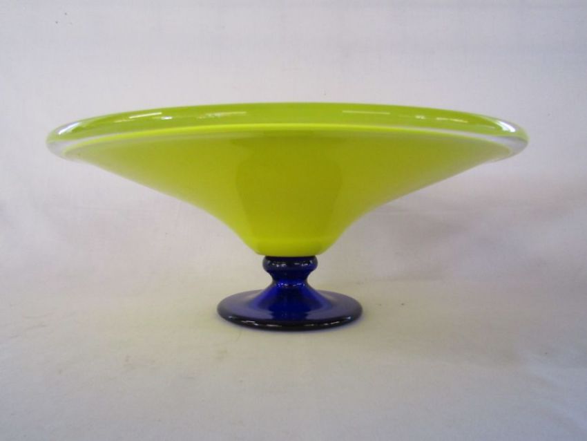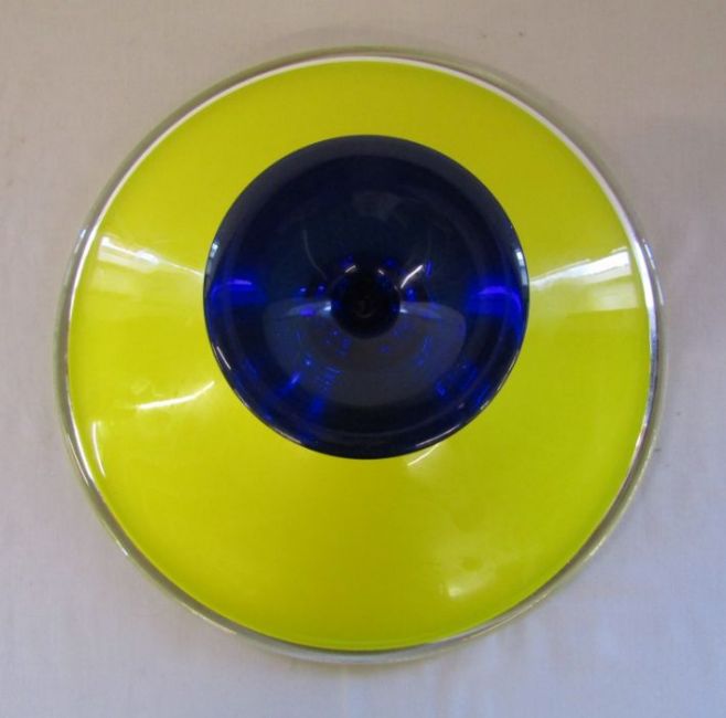 Yellow and blue glass fruit bowl approx. 41.5cm across - 16.5cm tall