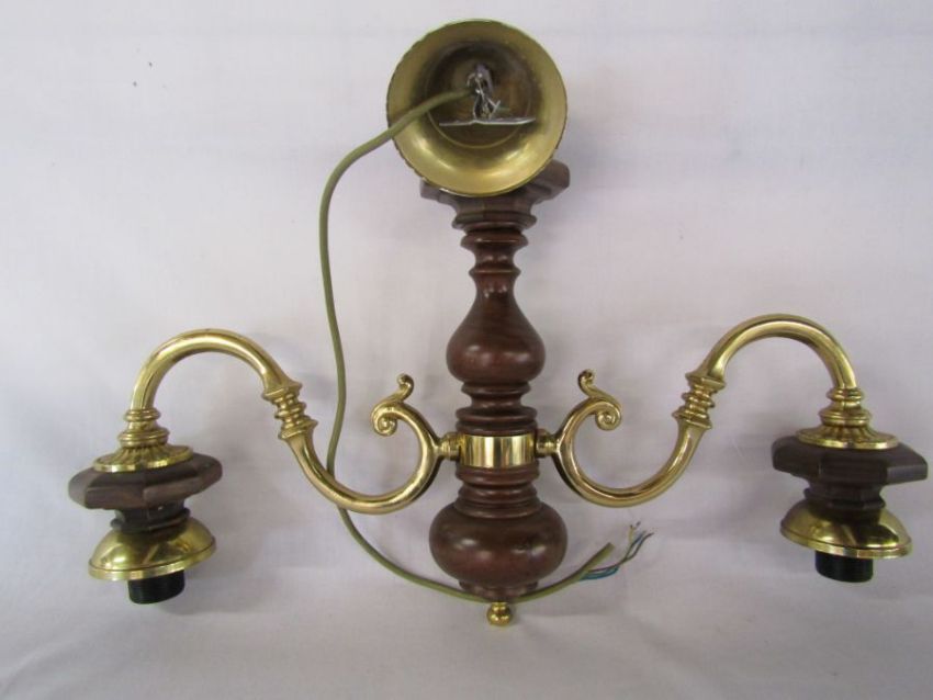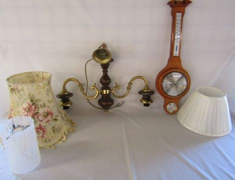 2 arm ceiling light, lamp shades and a Weathermaster barometer