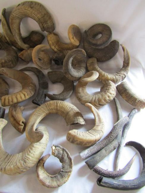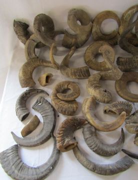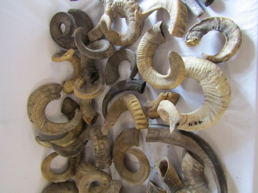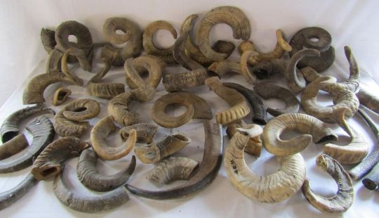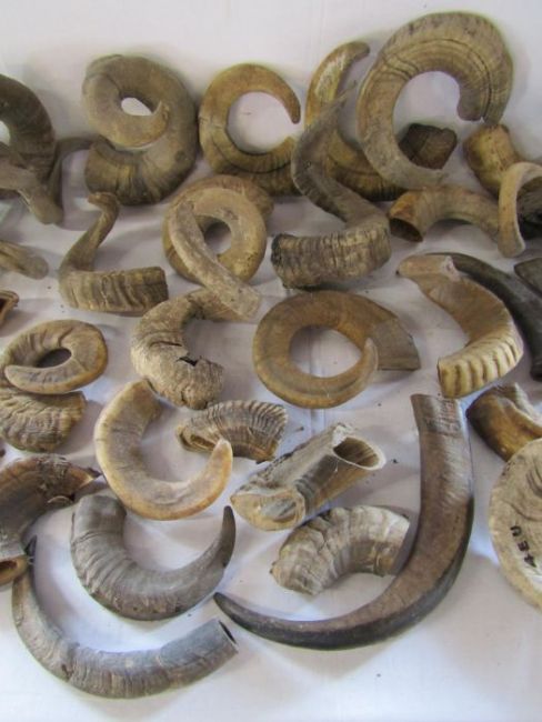 Large collection of unmounted ram horns