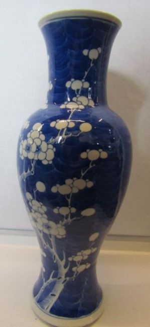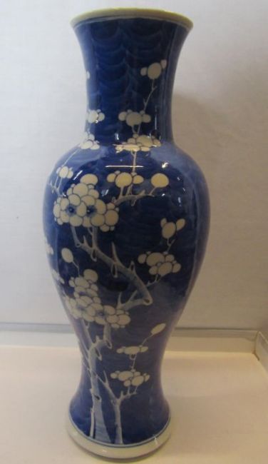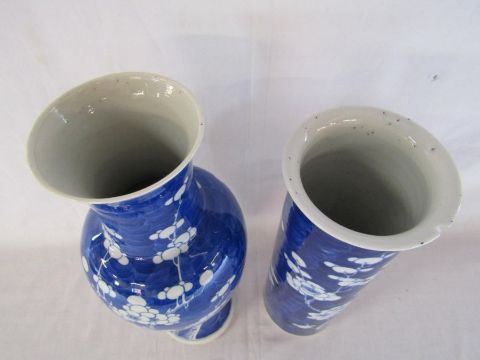 2 large Prunus Blossom Chinese vases - the sleeve vase approx. 31cm tall (does have a chip to the rim), the phoenix tail vase approx. 34.5cm tall