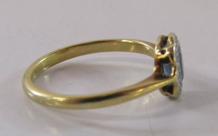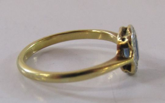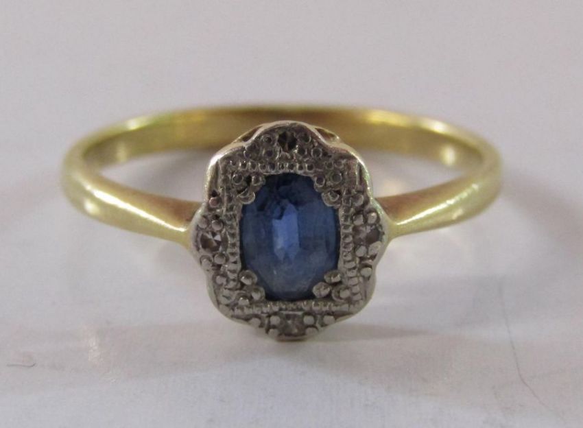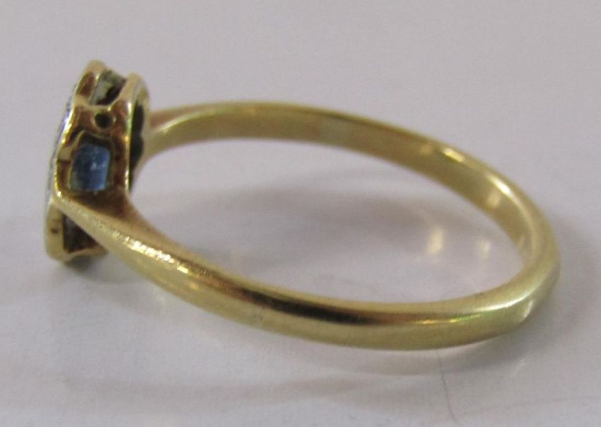 Victorian design 9ct gold ring with sapphire and diamonds - 9ct mark very worn - ring size N -  total weight 2.49g