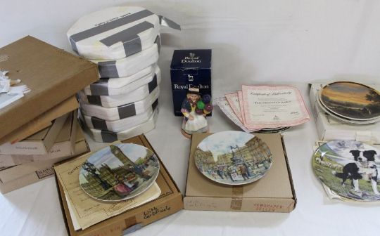 Royal Doulton Balloon Girl figurine with box HN2818 & selection of collectors plates including 14 x Davenport "Cries of London"