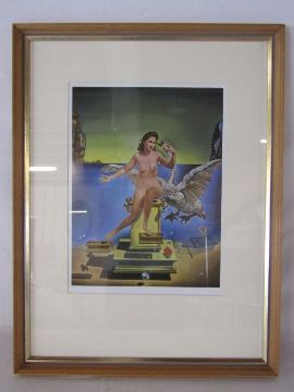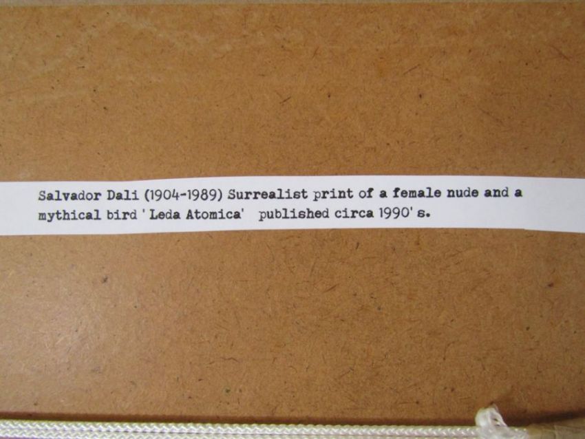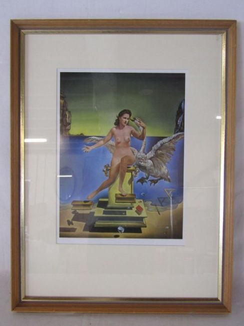 Salvador Dali surrealist print 'Leda Atomica' female nude and mythical bird, approx. 64.5cm x 49cm (includes frame)