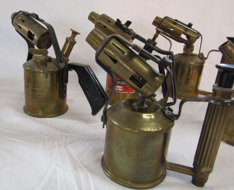5 Swedish blow lamps, including Sievert, and 2 soldering tools