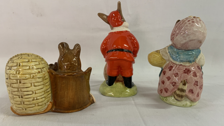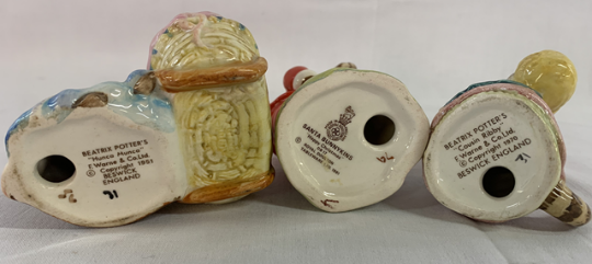 Beatrix Potter figures - Beswick Hunca Munca - Cousin Ribby and Royal Doulton Santa Bunnykins