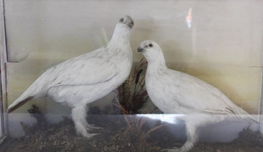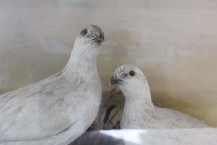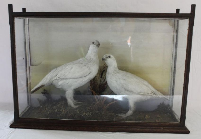 Taxidermy - Pair of Ptarmigan - cased approx. 79cm x 47.5cm (case damaged)