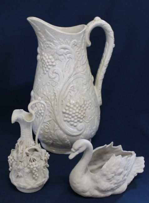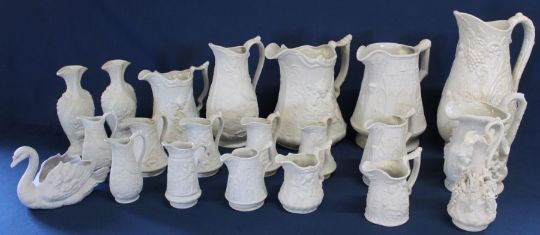Selection of Portmeirion British Heritage Collection parian ware jugs and 3 similar pieces including a swan and 2 jugs