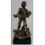 Polished metal sculpture of Victorian fireman carrying a young girl, raised on resin base, 34cm high