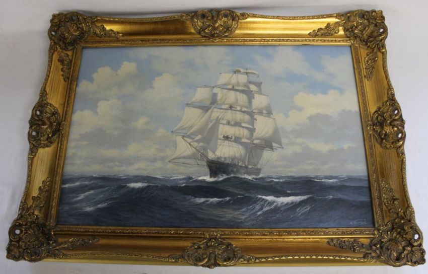 Kenneth Jepson (1932-1998) large gilt framed oil on canvas depicting a clipper at sea, signed & dated '77, 91cm x 66cm
