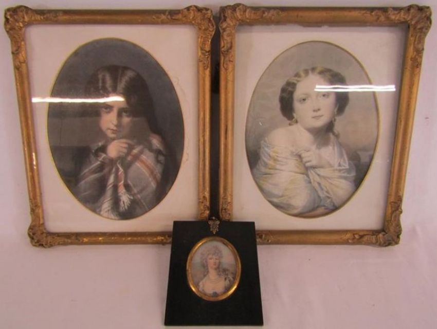 2 framed portrait prints and a miniature print of Marie Antoinette