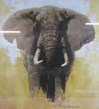 2 framed David Shepherd pencil signed pictures with additional signature to rear on both - Elephant and Tiger and an unsigned pier watercolour - elephant picture approx. 55.5cm x 51.5cm