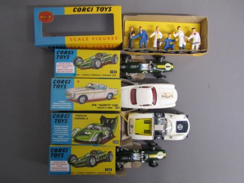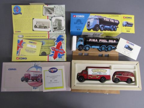 Collection of Corgi cars includes the 'Saints' car, Rail freight, Bedford Coach, Siddle Cook, Kendal mint cake, Fina Fuels, Billy Crow & Sons Showmans