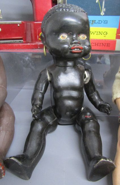 3 vintage dolls and Vulcan Senior sewing machine - Made in England 535811 white doll and 2 black dolls with earrings