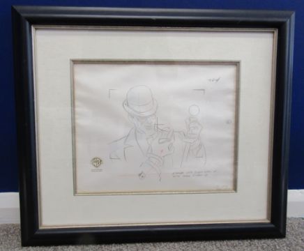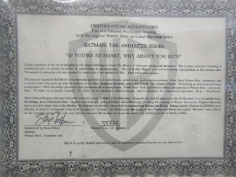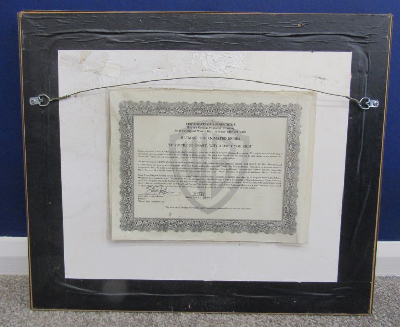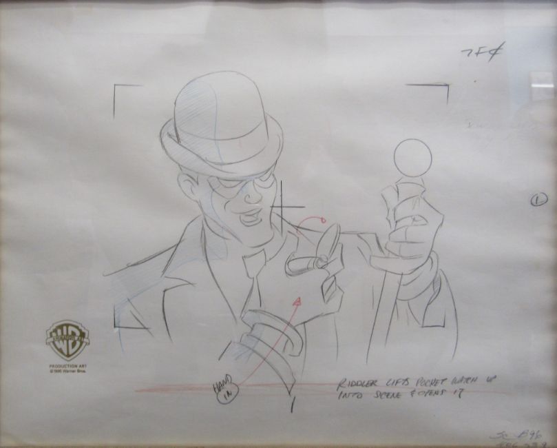 'If you're so smart, Why aren't you rich?' Warner Bros Riddler genuine production original animator's drawing cel transferred onto acetate either by hand-inking or photocopying and hand-painted on the reverse - 52cm x 45cm