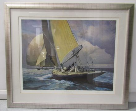 Framed Frank H Wagner print 'Spring Trials'  Endeavour & Shamrock V off Cowes 1934 Limited edition 632/650 - approx. 81cm x 68.5cm
