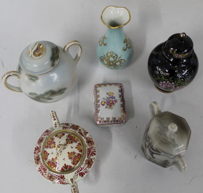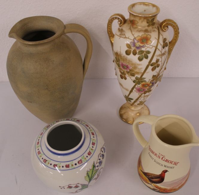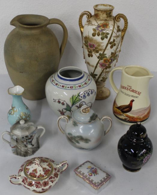 Mixed ceramics including a Hilstonia jug / flagon 30cm, vase 35cm and other vases / trinket box