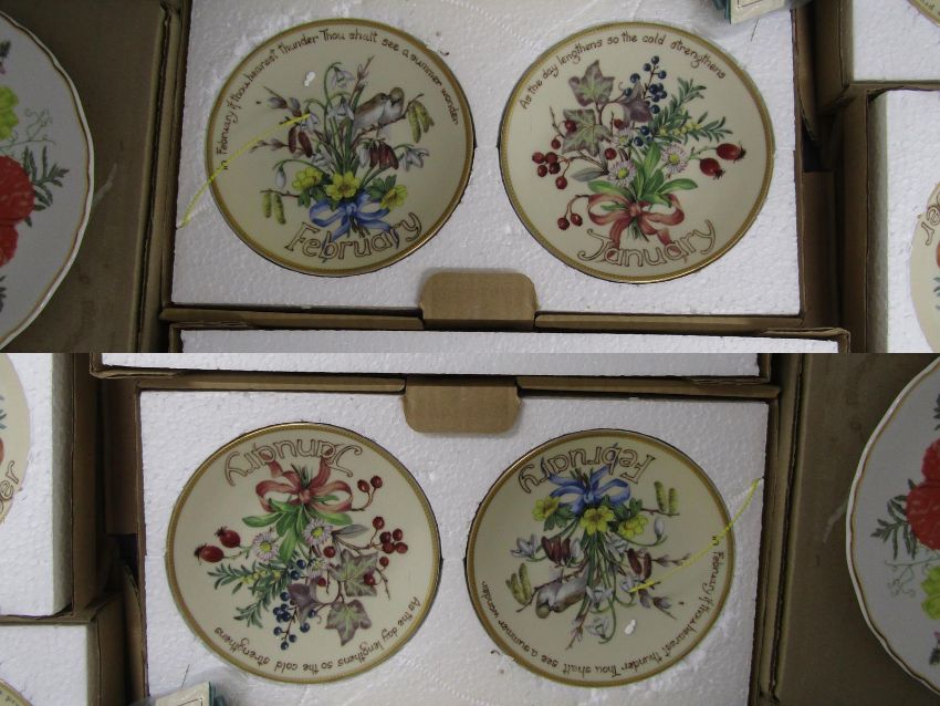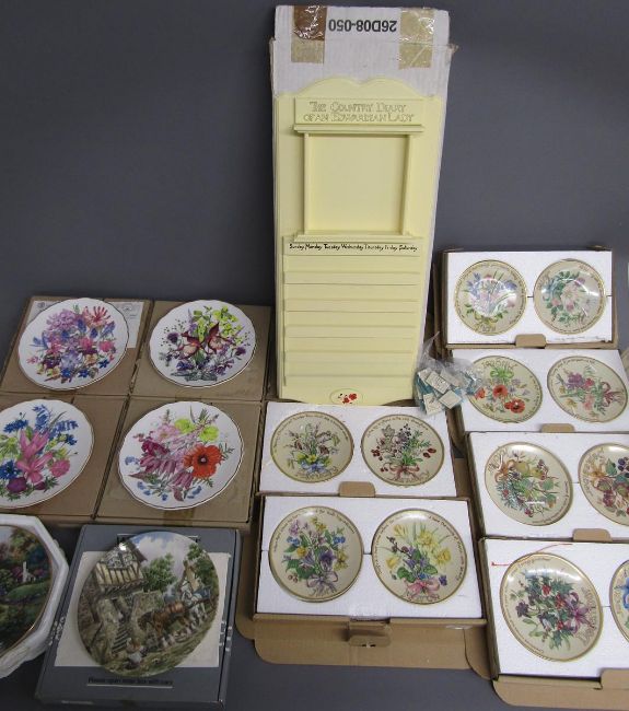 Collector's plates - Royal Albert 'The Queen Mother's Favourite Flowers' - Royal Worcester Tuesday & Thursday's child - Bradex A-Z of Wild Flowers & The Country Diary of an Edwardian Lady perpetual calendar