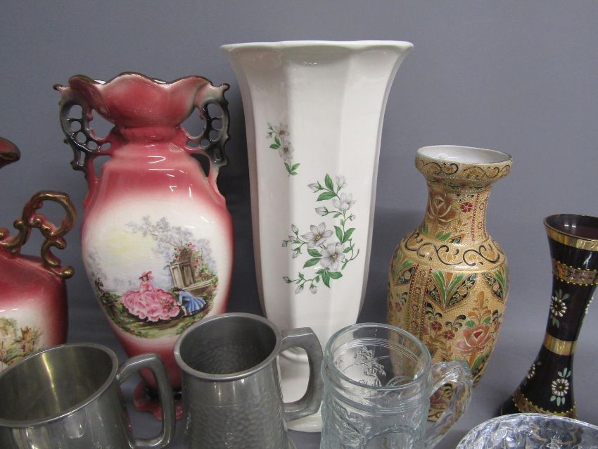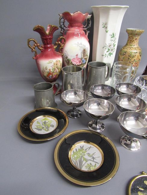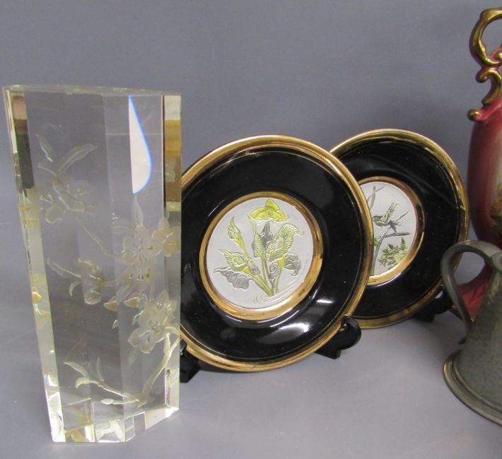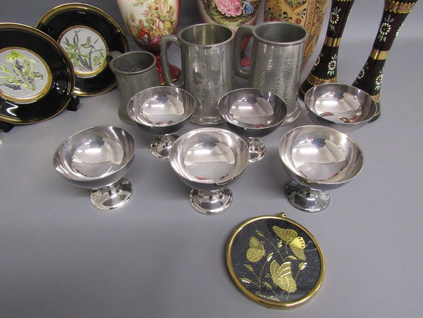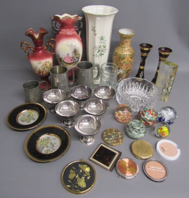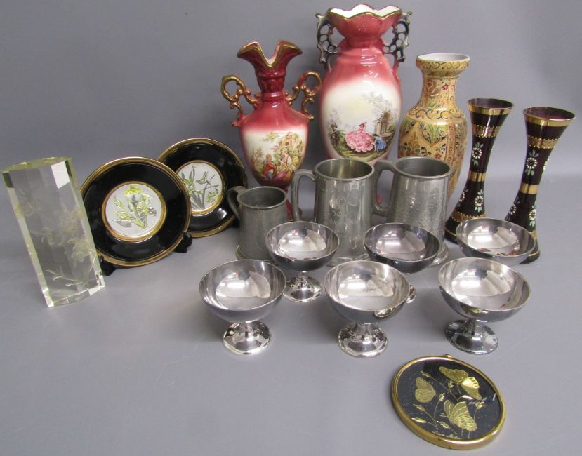 ***AMENDED DESCRIPTION-ITEMS ADDED TO LOT** Collection of items includes The Art of Chokin plates - vases, pair of painted and gilded glass vases, pewter tankards, silver plate also includes glass paperweights, Arthur Wood vase, glass dish etc