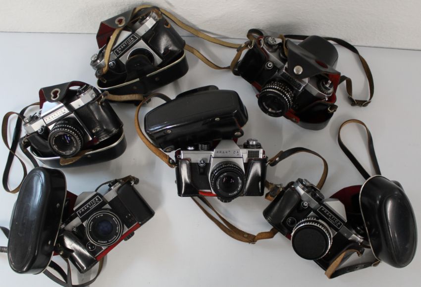 Selection of Praktika cameras, models to include Tvotel, PL Nova 1 (body only), PL Nova 1B, 2 x Super TL, LB