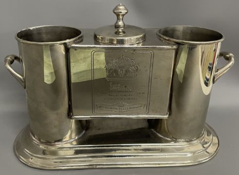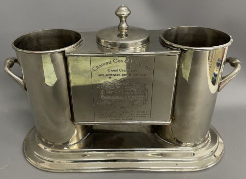 Chenas Beaujolais & Chateau Cos d Estournel silver plate double wine cooler/pale