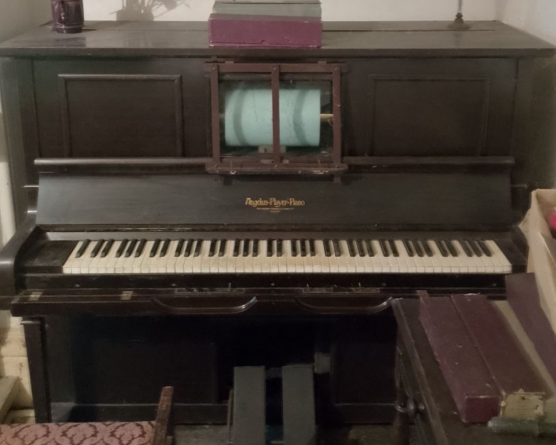 Angelus Player Piano / pianola by Herbert Marshall & Sons London & a quantity of piano rolls (approx. 56) - this item is currently situated at a property in Louth - viewing and collection by appointment