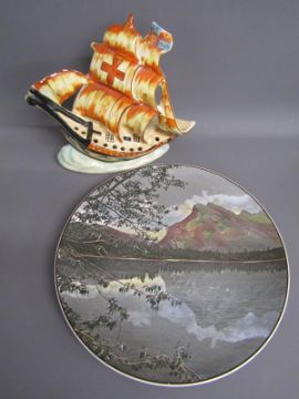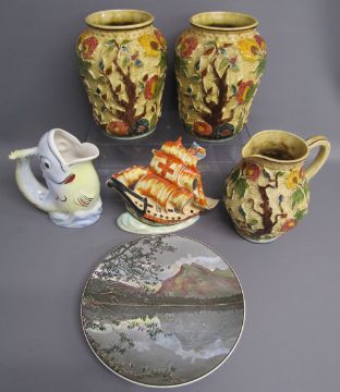Arthur Wood 'Indian Tree' vases and jug, HMS Nelson, Czechoslovakia fish jug and a picture plate