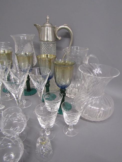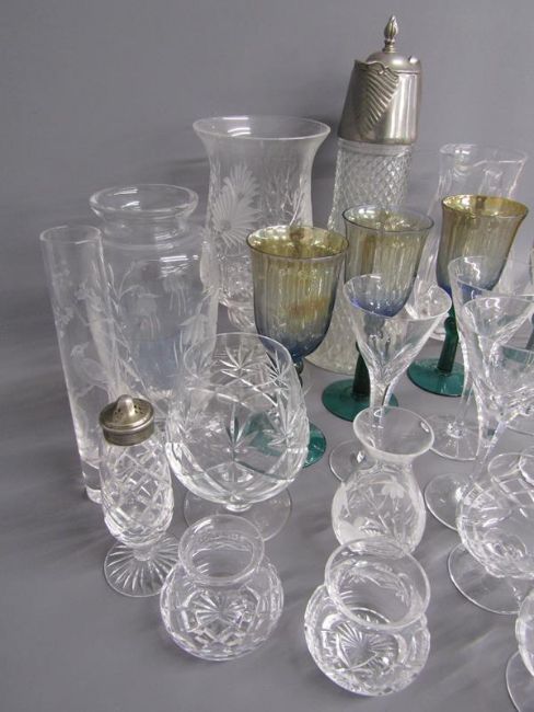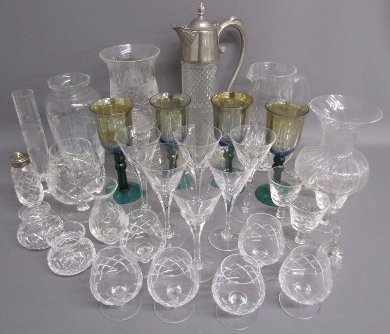 Glassware includes tealight lantern, vases, Millennium iridescent glasses, etc