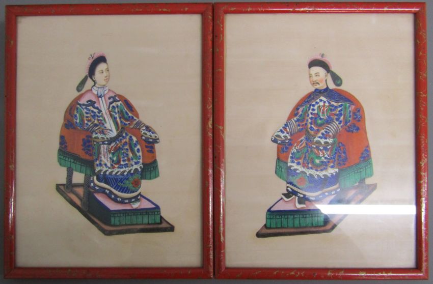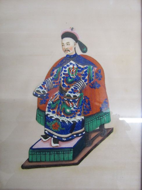 Pair of framed hand painted Qing dignitaries possibly on rice paper - approx. 24.5cm x 19cm