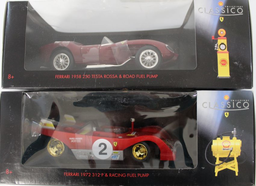 Pair of Classico Collezione diecast models - 1/18 scale - 1958 Ferrari 250 Testa Rossa (with fuel pump) and 1972 Ferrari 312P (with racing fuel pump) and a Burago Gold Collection Maserati 3200GT