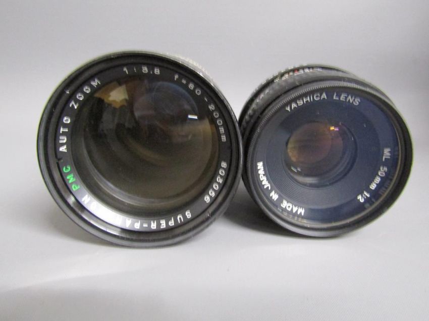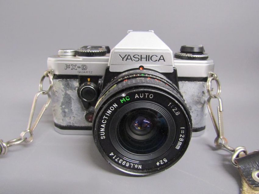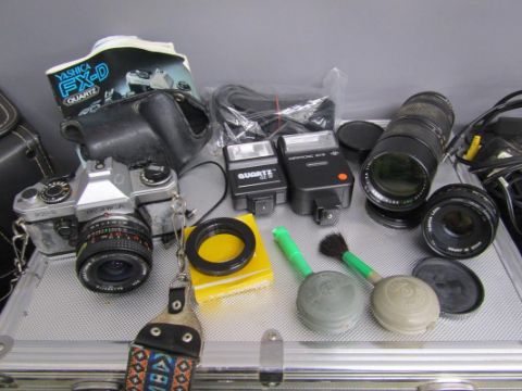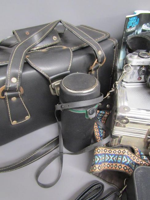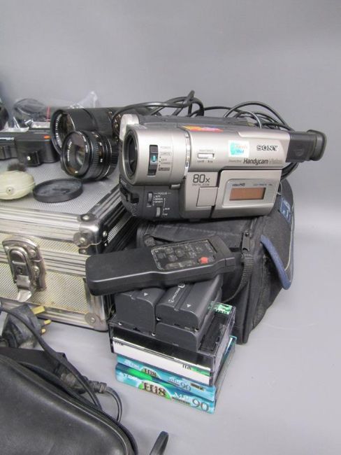 Cameras includes -  Yashica FX-D with Sunactinon MC auti lens, Super-Paragon PMC auto zoom lens, Yashica lens ML 5mm in an aluminium case - Kodak easyshare c703 with printer and paper - Hanimex 110 and Sony HI8 handycam CCD-TRV67E with accessories