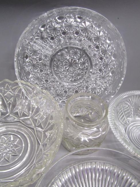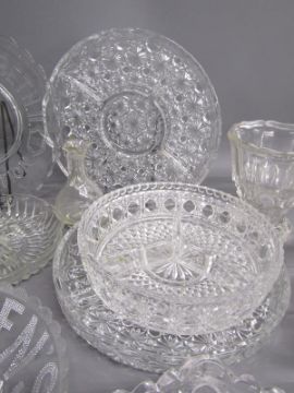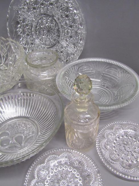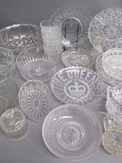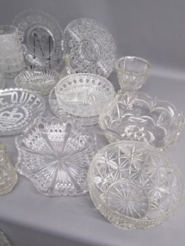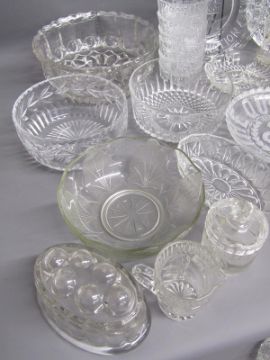 Glassware includes hors d'oeuvre plates, Jubilee dishes, fruit bowls, dessert bowls etc