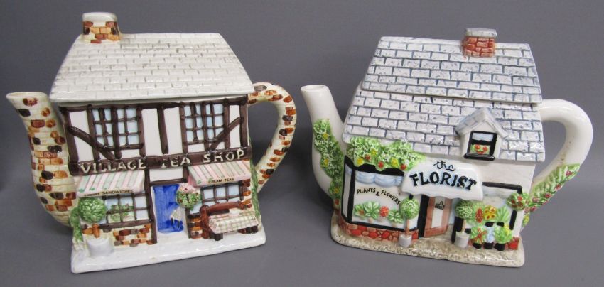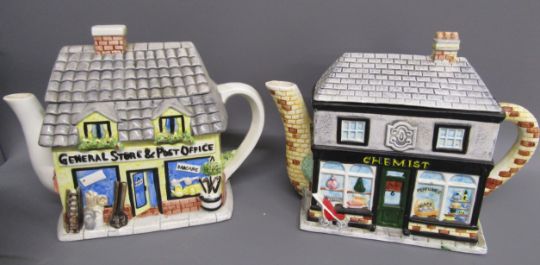 12 The Village teapots - Chemist - General Store - Village Tea Shop - The Florist - Village Bank - Golf Club - Village Hall - The Watermill Restaurant - Gift Shop - Wine Merchants - Fish & Chips - Greengrocer