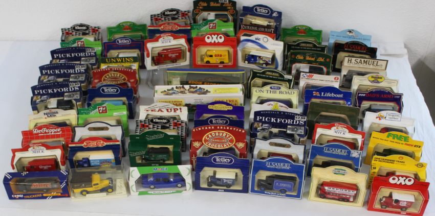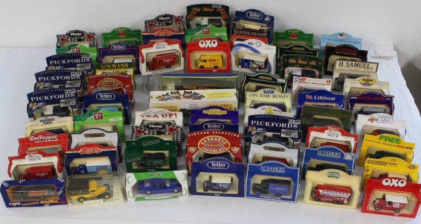 Selection of 61 diecast cars with advertising / promotional theme by Corgi, Lledo, Solido