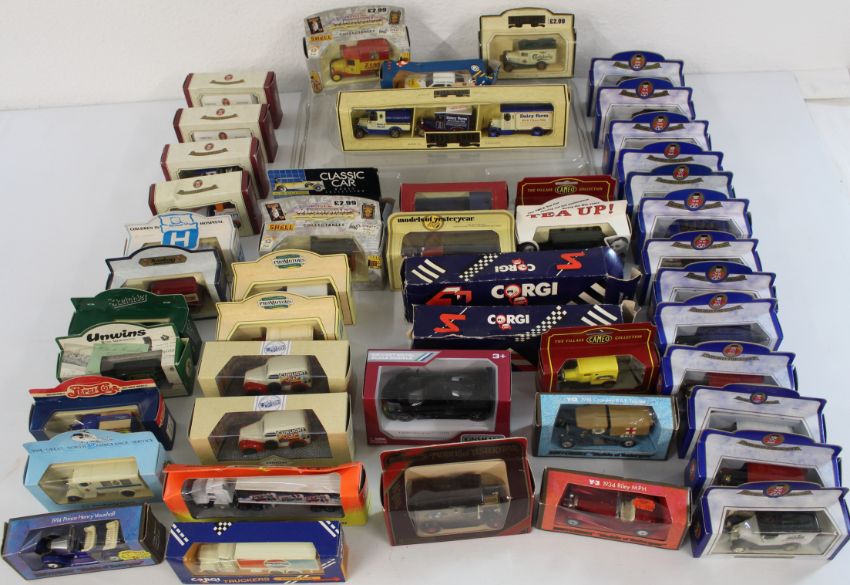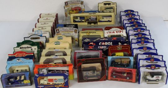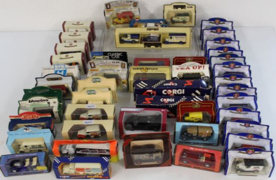 Selection of 50 advertising/promotional diecast cars by Lledo, Corgi, Matchbox, Oxford Diecast, Kinsmart etc.