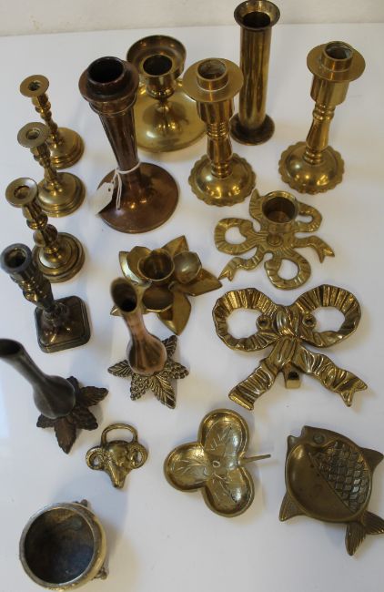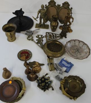 Mixed brass including picture frame, ashtrays etc.