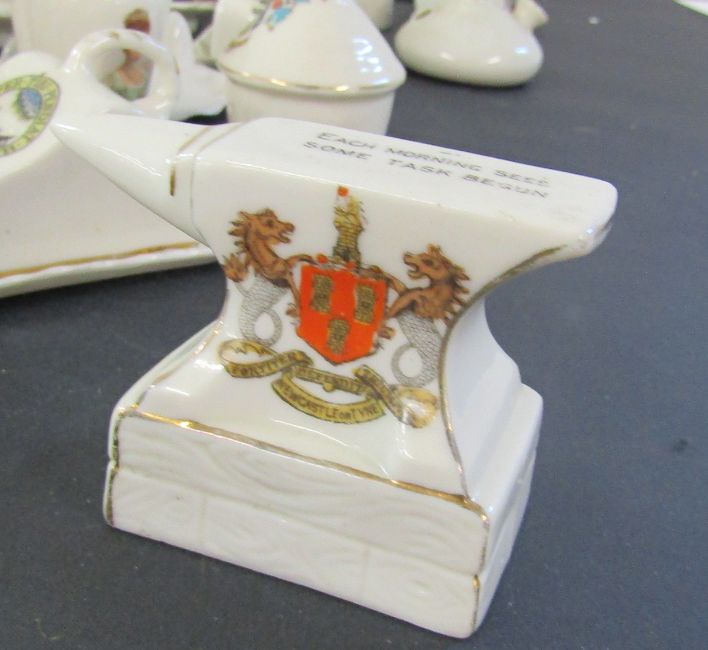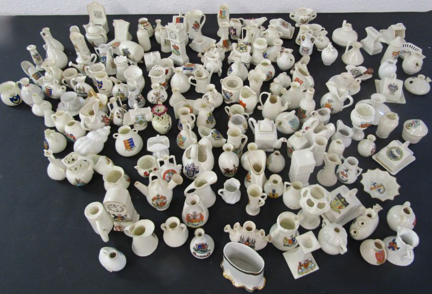 Large collection of crested china including clocks, pots, candle holders, teapots etc