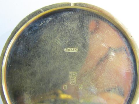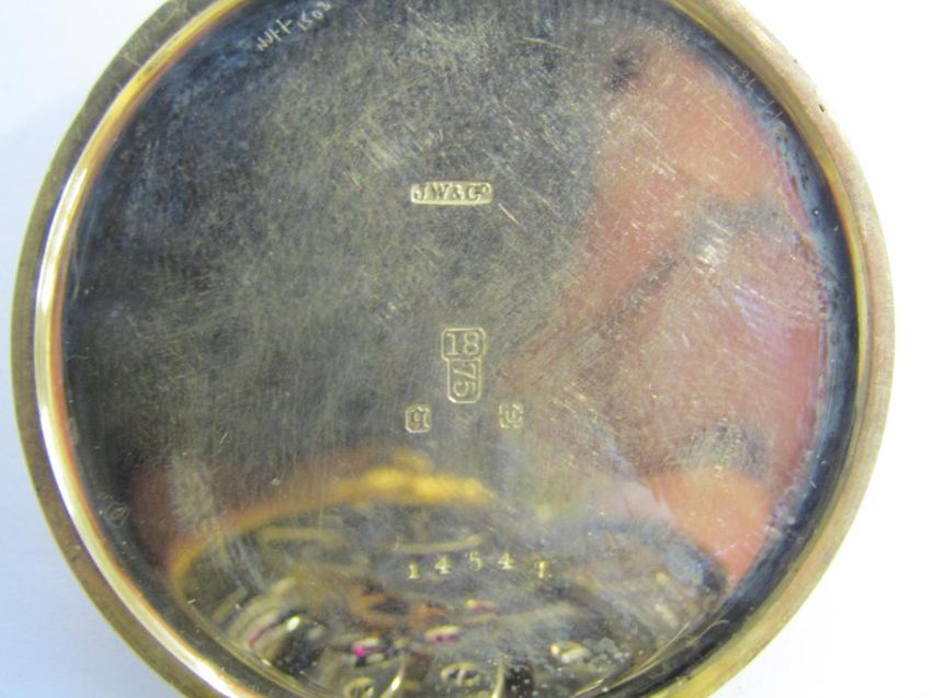 18ct gold open face pocket watch - case stamped JW & Co - face dia. 4.1cm -  total weight 48.9g - not working