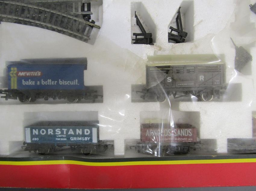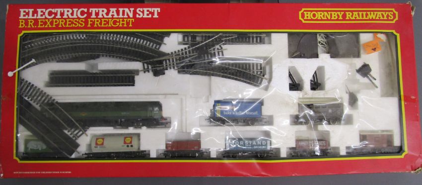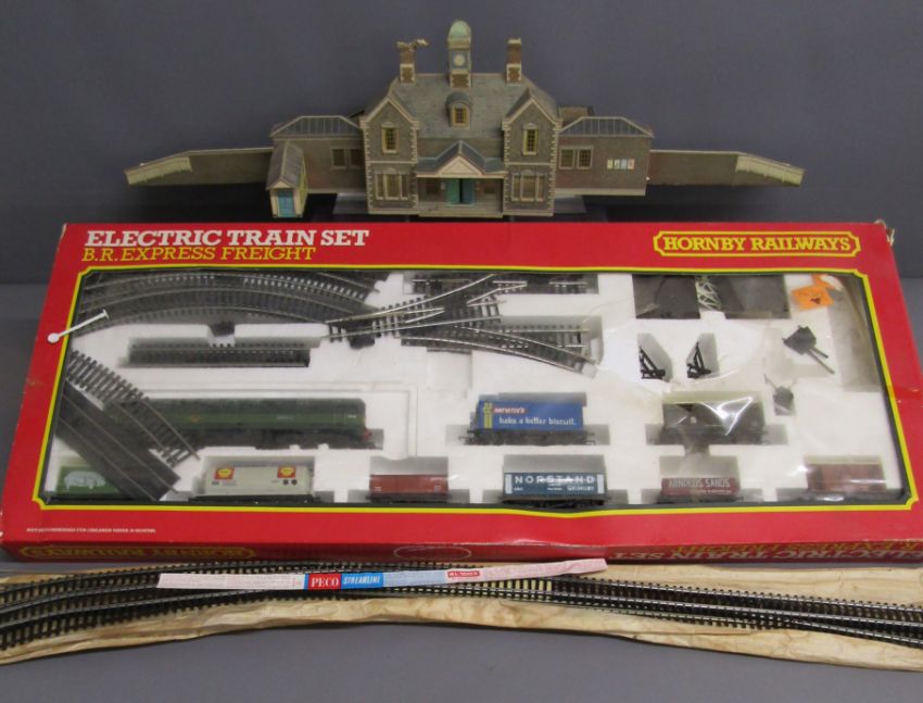 Hornby B.R. Express Freight electric train set - card station and Peco streamline track