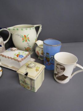 Shelley blue & green vase - J H W & Sons jug Mason's Mandarin jugs - Royal Minton conserve pot - King Edward VIII mug - The Royal Collection glass scent bottle - Queen's Jubilee 1837- 1887 mug and metal beaker